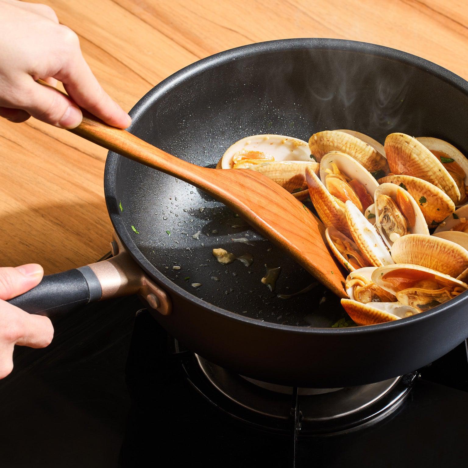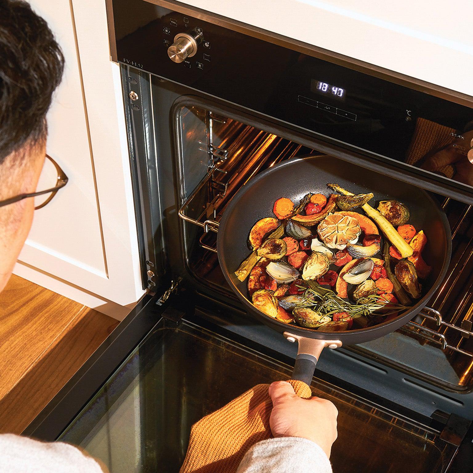 This extra-deep everyday pan holds 25% more food than others its size, with a cushy silicone grip that feels effortlessly luxurious. Oh, and no worries: our high-quality nonstick finish is completely food safe and family safe.