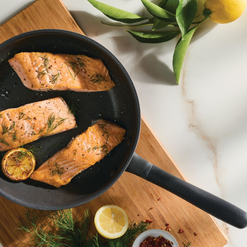 Thanks to a wider, deeper profile, this pan fits 25% more food than other pans of the same diameter — meaning: there's more room for your food to sizzle and sear!
