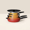 The Essential Set isn't just about cooking - it's about smart storage too. Every pan and pot is designed to fit together effortlessly, streamlining your storage. And with it's universal lid system, there's no more lid-hunting.