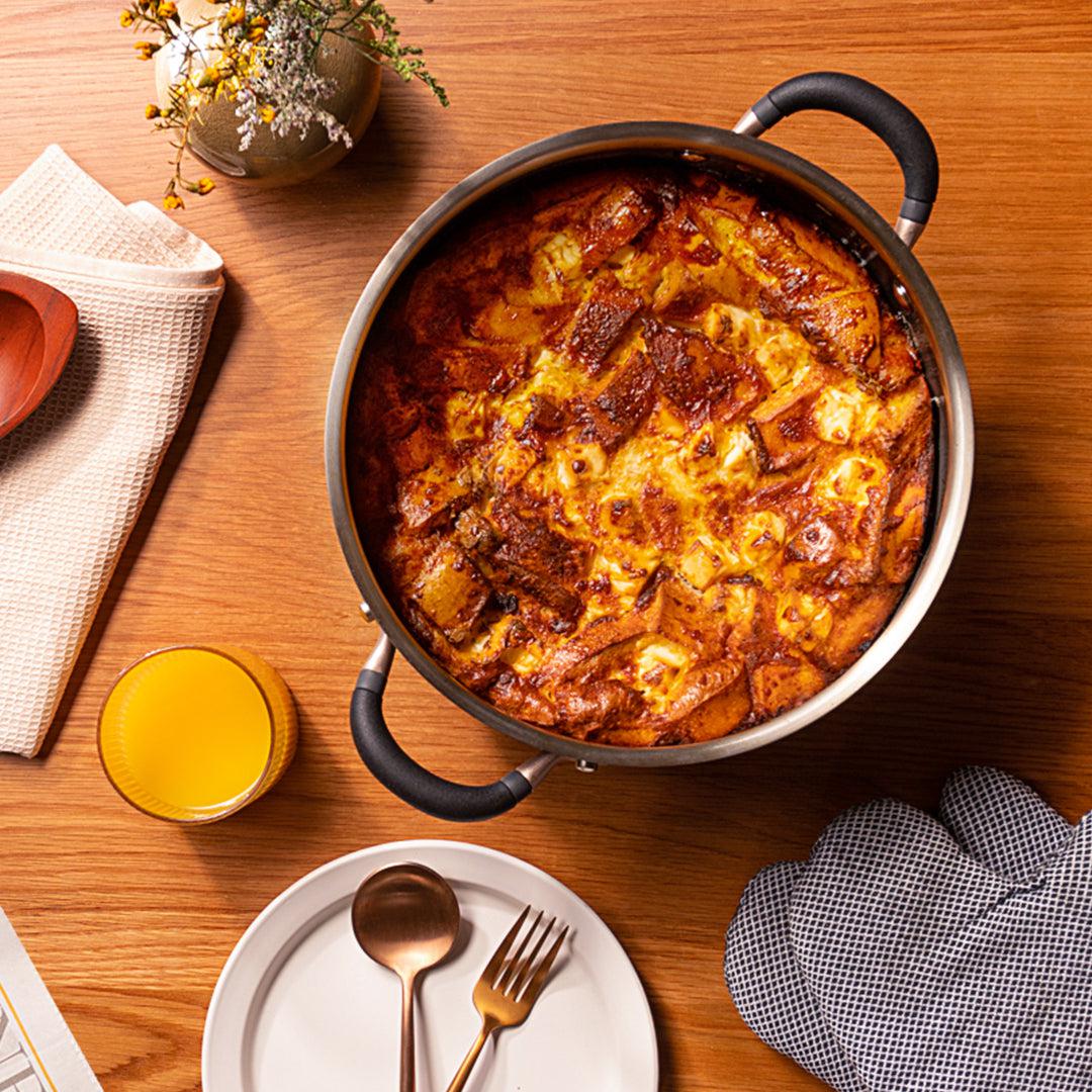The Dutch Oven is designed for versatility, seamlessly transitioning from stovetop to oven. It's oven-safe up to 445°F, making it perfect for searing on the stove and finishing with a slow bake.