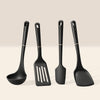 The ladle, spatula, and wok turner have high-heat resistant silicone tool heads that can stand up to a blazing 482°F! And the flipper with a melt-resistant, fibreglass-reinforced tool head withstands up to 437°F.