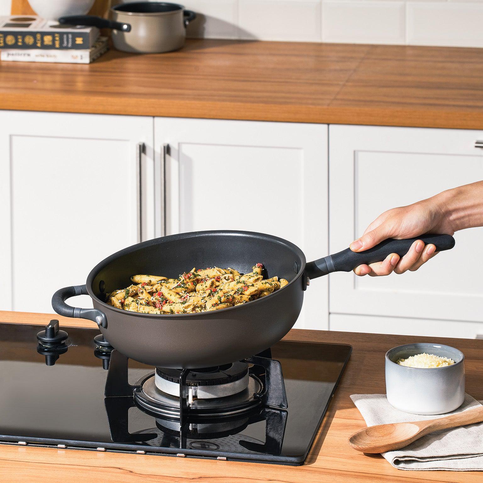 The depth you need from a pot with the surface area you need from a pan. It does it all!