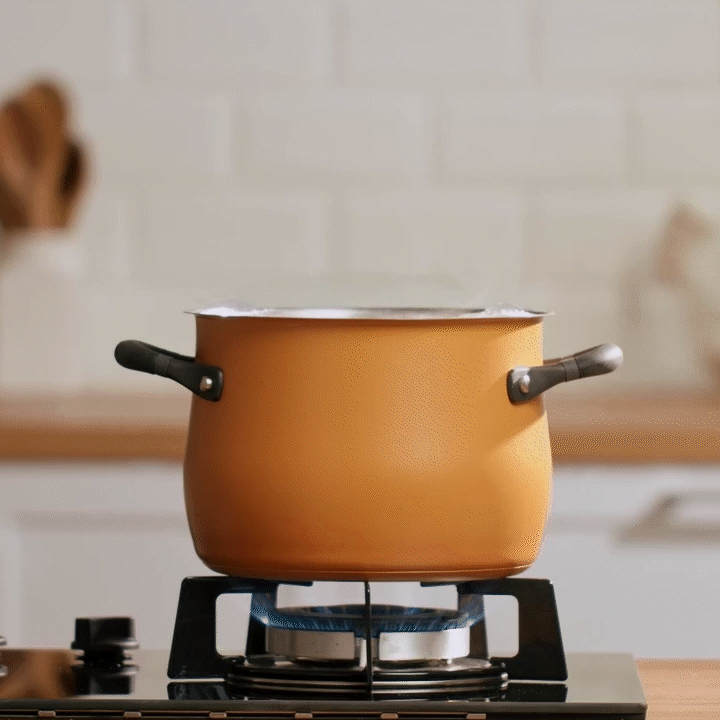 The pot's special curvature and rim design help keep the bubbles at bay. Goodbye boilovers!