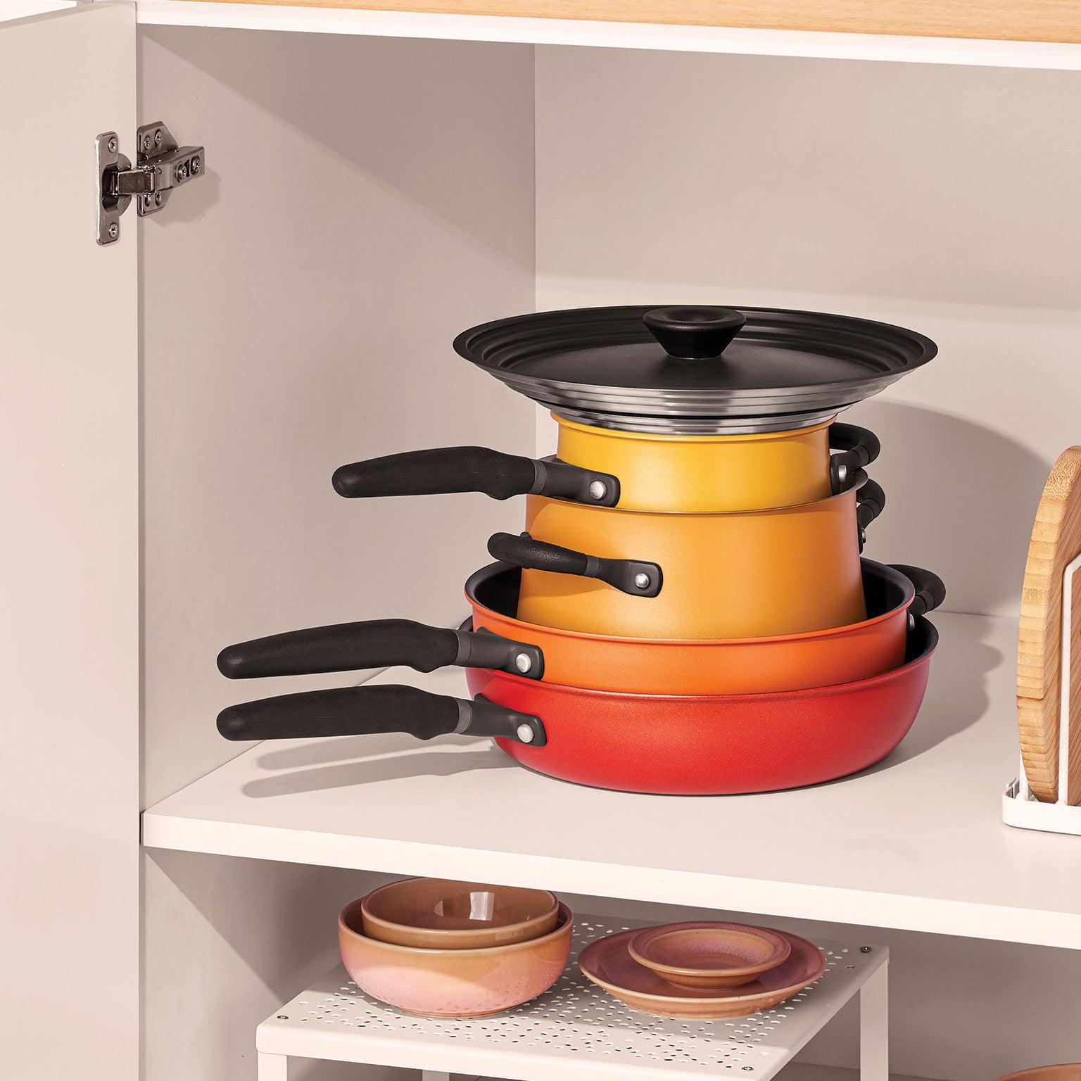 The Essential Set isn't just about cooking - it's about smart storage too. Every pan and pot is designed to fit together effortlessly, streamlining your storage. And with it's universal lid system, there's no more lid-hunting.