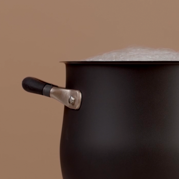 The pot's special curvature and rim design help keep the bubbles at bay. Goodbye boilovers!