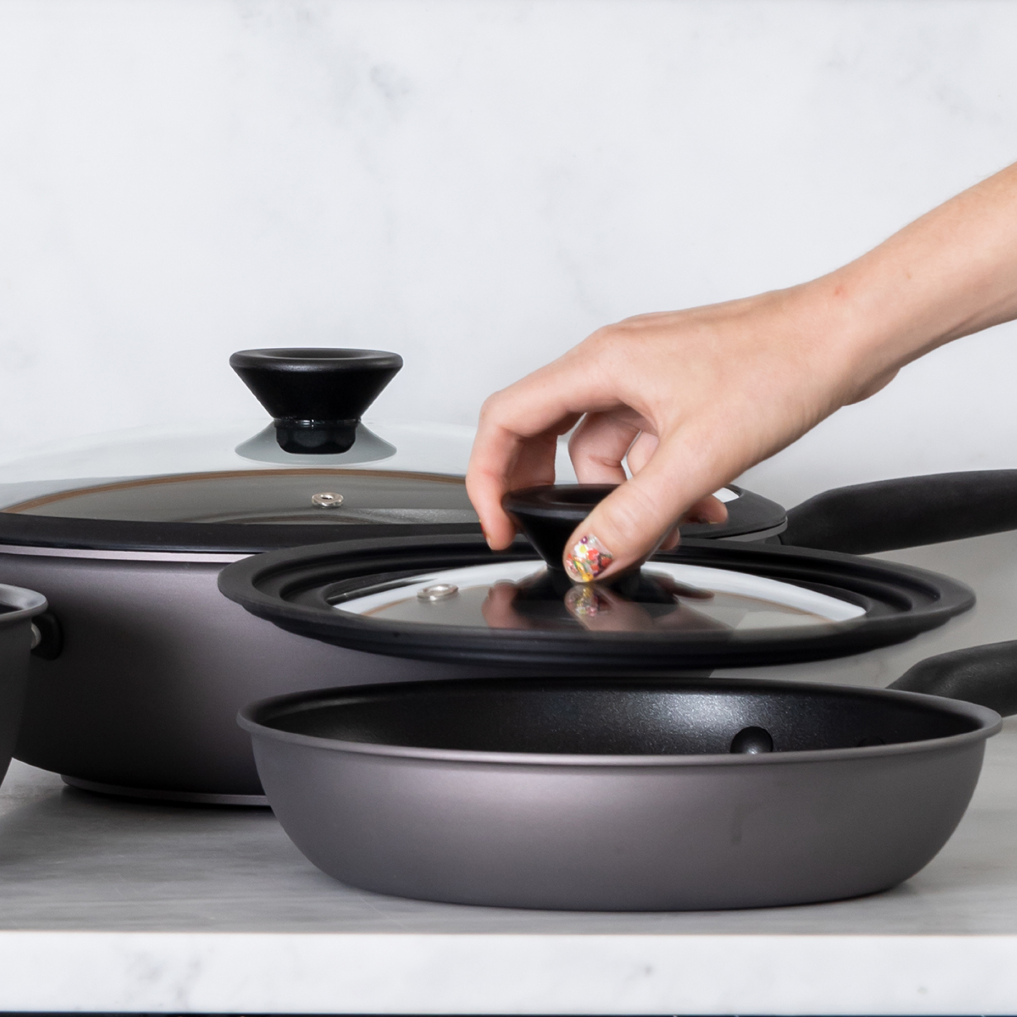 No more scrambling to find the right lid for any given pot — swap our lid from pot to pot without a care in the world. Our Universal Glass Lid fits any items with an 8, 8.75, or 9.5 inch diameter. For more sizes, check out our Accent Series Universal Lids.