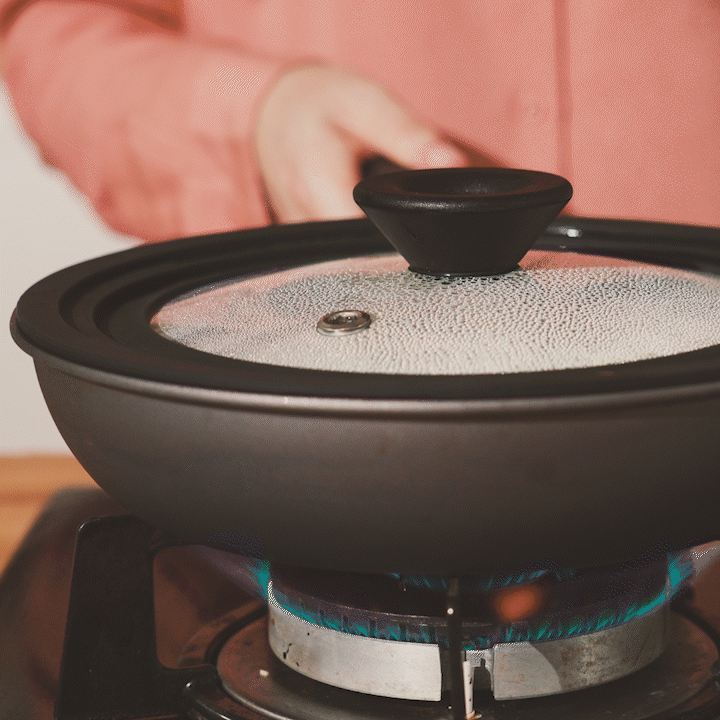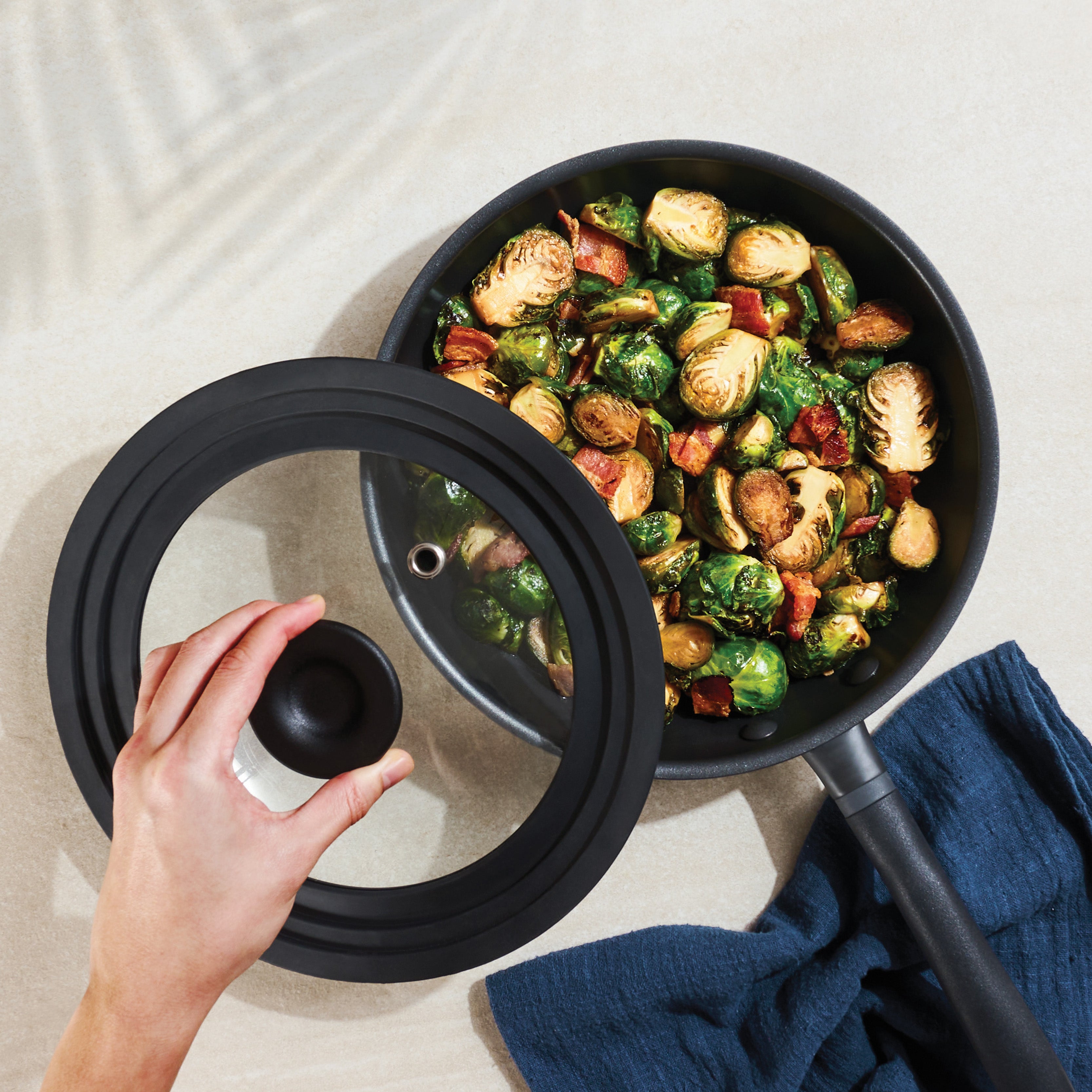 Declutter your kitchen with this universal glass lid—fitting the io Saucier, io Frypan, and most other pans you own—and take a cue from Chef David Chang, who uses it as a trivet, spoon rest, and even a spot for his fried egg while finishing up his fried rice!