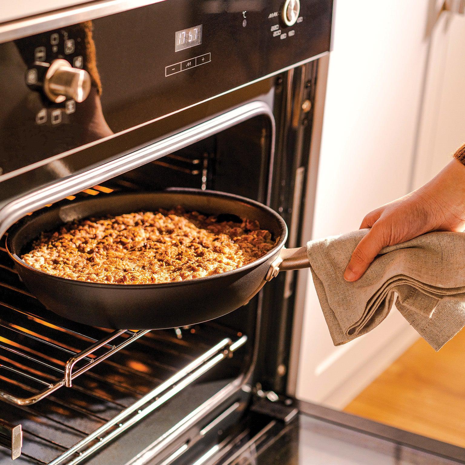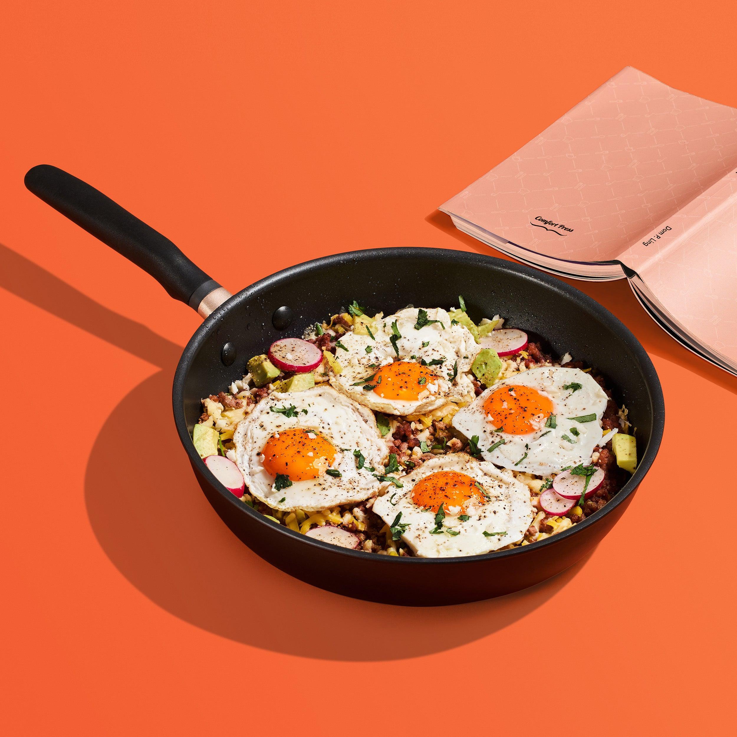 This extra-deep everyday pan holds 30% more food than others its size, with a cushy silicone grip that feels effortlessly luxurious. Oh, and no worries: our high-quality nonstick finish is completely food safe and family safe.